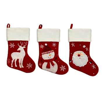 Suministros de vacaciones de Navidad 3D rojo y verde Santa Claus ciervo muñeco de nieve personajes bordados calcetines para decoraciones